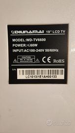 TV LCD Diunamai 19 pollici WD-TV6600 FHD Perfettamente funzionante Tv lcd 19" Risoluzione max. 1440x900 16:9 hd ready 50 hz Decoder DVB-T integrato 6 ms funzione pvr