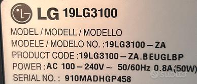 TV lcd Marca LG 19 pollici mod. 19LG3100 Perfettamente funzionante . Telecomando nuovo mai usato. PREZZO NON TRATTABILE.