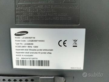 Tv come da caratteristiche qui sotto, perfettamente integro e funzionante. Samsung LE-32B350F1W. Dimensioni schermo: 81,3 cm (32"), Risoluzione del display: 1366 x 768 Pixel, Tipologia HD: HD, Tecnologia display: LCD, Rapporto d'aspetto nativo: 16:9. Colore del prodotto: Nero. Telecomando Incluso.