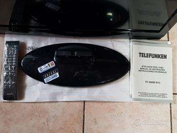 Vendo tv LCD Telefunken 26" HD Ready, formato 16:9, colore nero, comprensivo di telecomando originale, libretto d' istruzioni e piedistallo. Possibilità di fissaggio a parete. Misure: L 64 cm, h 43 cm, p 9 cm In abbinato vendo inoltre decoder STRONG DVBT2, HDMI, completo di telecomando e accessori originali. Il tutto è di facile istallazione. Il prezzo è trattabile. Non esitare a contattarmi per maggiori info oppure per visionare l'articolo.