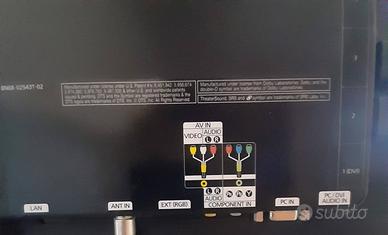 Televisione TV LED 32 pollici 100 Hz marca Samsung modello UE32C6000RP, dimensioni ingombro in altezza compreso piedistallo cm 55, larghezza cm 77, con manuale di istruzioni e telecomando. Non è un TV smart. Per vedere in alcuni canali occorre il decoder, quindi do in omaggio un decoder Telesystem DVB-T2HEVC.