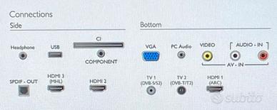 Vendo tv 42 pollici della philips UTILIZZATO 1 mese per motivi familiari lo cedo , è integrato di decoder , è pari al nuovo , ha 3 uscite hdmi uscita vga uscita audio uscita video uscita dvi e tante altre funzioni , NON ha la connessione wifi per collegarsi ad internet, pagato poco piu' di un anno fa oltre 300 euro . NON TRATTABILE dotato di telecomando originale