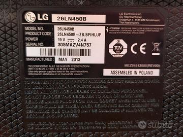 Vendo come da titolo (causa inutilizzo), una Televisione LED HD da 26 Pollici, marca LG, modello 26LN450B, colore Nero, compresa di Alimentatore e Telecomando.