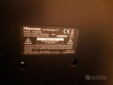 Televisore Hisense 32'', con le principali connettività di oggi (HDMI) e telecomando. Come nuovo, con decoder DVB-T2 integrato.