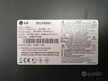 Vendesi televisore LG 32 pollici modello 32LV355C Full HD colore nero, compreso di suo telecomando e cavo di alimentazione. TV funzionante in buone condizioni, graffi presenti sulla plastica ma schermo intatto.