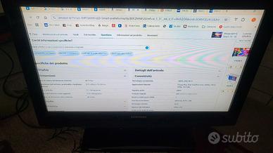 Vendo TV Samsung usata, credo 40 pollici, attualmente la utilizzo come secondo monitor per il PC. Ha un graffio sul monitor che si vede solo a TV spenta e non quando è accesa come si vede dalle foto. Ha telecomando ma non lo utilizzo in quanto ha dei tasti in basso a destra nel monitor. Non spedisco.