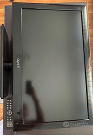Televisore Q•Bell con tecnologia LED retroilluminata, utilizzabile come monitor. Munito di telecomando a cui manca lo sportellino batterie