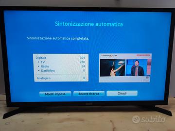 vendo HDMI TV LED Samsung UE32J4000AW. schermo 32 polici. con telecomando. tutti HD canali funziona senza decoder. Samsung UE32J4000AW. Dimensioni schermo: 81,3 cm (32"), Tipologia HD: HD, Risoluzione del display: 1366 x 768 Pixel. Tipo sintonizzatore: Analog & Digital, Formato del segnale digitale: DVB-T, DVB-C. Potenza in uscita (RMS): 10 W, Formato audio integrato: Dolby Digital, Tecnologie di decodifica audio: Dolby Digital Plus. Smart modes: Gioco, Sport, Film. Tecnologia di elaborazione immagine: Samsung Wide Color Enhancer. Interfacce con montaggio VESA: 200 x 200 mm. Larghezza: 745,4 mm. Profondità: 69 mm. Altezza: 442,2 mm. Peso: 3,73 kg. Larghezza (con supporto): 74,5 cm. Profondità (con supporto): 15,1 cm. Altezza (con supporto): 46,7 cm. Peso prodotto con supporto: 3,82 kg.