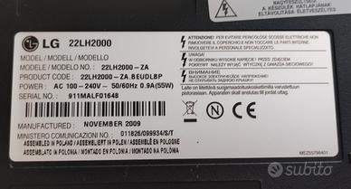 TV LG 22 pollici no smart perfettamente funzionante manca solo il cavo alimentazione