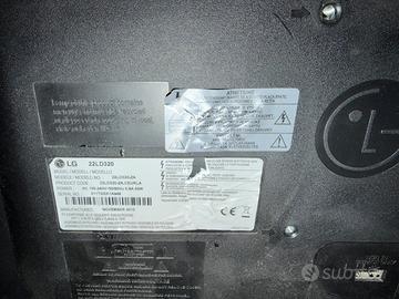 TV 22" LG, modello 22LD320-ZA. Vendo per passaggio a modello più recente, perfettamente funzionante. Necessita di decoder del digitale terrestre. Vendo con telecomando, ma senza piedistallo, per cui dovete usare un supporto VESA (VESA 100).
