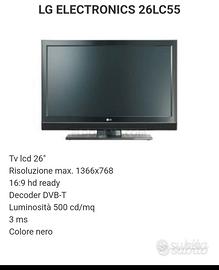 Vendo televisore LG 26 pollici in ottime condizioni estetiche e funzionali. Perfetto per una cucina, una camera da letto o come monitor secondario per il computer.
