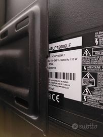 TV LG 43 pollici con varie funzioni: USB IN, HDMI IN e quant'altro, compreso c'è il supporto per attaccare a muro la televisione condizioni ottime usata poco perché seconda TV..