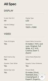 Vendo TV Lg 49 pollici modello 49LF540V No Smart TV.Funzionante,perfetto per collegare console in Full HD.