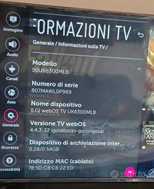 Vendo TV LG 50 pollici in ottimo stato e nessun graffio sullo schermo, telecomando rovinato a causa di cadute accidentali (funzionante).. Possibilità di visionare senza impegno, prezzo non trattabile, non effettuo spedizioni
