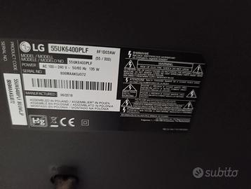 TV lg 55 pollici 4k si vende per pezzi di ricambio o riparazione. In buonissime condizioni esterne, anche lo schermo è integro ma per colpo accidentale non si vede più bene
