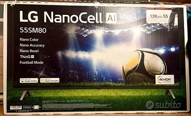 Vendo TV LG NanoCell AI modello 55SM80 da 55 pollici, con risoluzione 4K Ultra HD. La TV è in ottime condizioni, come nuova, perfettamente funzionante, senza difetti o problemi. Qualità dell’immagine molto buona grazie alla tecnologia NanoCell, colori brillanti e naturali. Ideale per film, serie TV e gaming. Sistema Smart TV con accesso alle principali app (Netflix, YouTube, Prime Video, Disney+, Dazn, ecc.). Caratteristiche principali: Schermo 55" 4K Ultra HD Tecnologia LG NanoCell Smart TV (Wi-Fi integrato) HDR Audio potente e chiaro Telecomando originale incluso