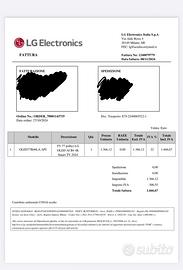 TV Oled da 77 Pollici praticamente nuovo acquistato su sito LG (vedi fattura in foto) ad Ottobre 2024 e quindi ancora in garanzia ufficiale.
