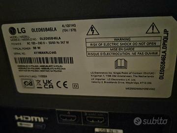 Tv Oled LG da 65" tipo OLED65B46LA di appena un anno di vita e scarso utilizzo. Corredato di tutti gli accessori originali e con ancora un anno di garanzia. Prezzo trattabile.