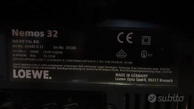 TV LOEWE 32 TUBO CATODICO NERO COME NUOVO completo di istruzioni e telecomando. condizioni come nuovo perfettamente funzionante. Ritiro a carico dell'acquirente. No spedizione.