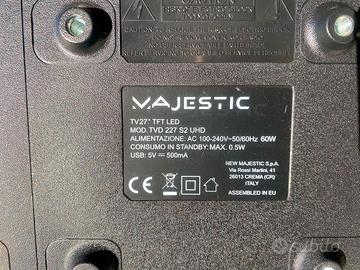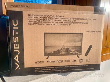 Vendo TV Majestic TVD 227 UHD MAJESTIC, 27 pollici, risoluzione Ultra HD 4K (3840×2160), con digitale terrestre DVB-T2 / HEVC Main 10 già pronto per i nuovi standard.