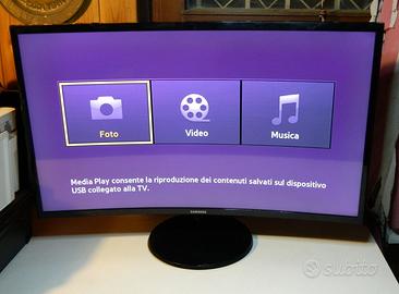 TV monitor LED curvo Samsung V32F390FEI. Usato, perfettamente funzionante e in ottime condizioni, incluso di: alimentatore, cavo alimentazione, telecomando, cavo audio jack 3.5mm, manuale d’uso e CD-ROM. -Dimensioni schermo: 80 cm (31.5") -Risoluzione: Full HD 1920 x 1080 Pixel -Rapporto d'aspetto: 16:9 -Tempo di risposta: 4 ms -Angolo di visualizzazione: orizzontale 178°, verticale 178° -Ideale per gaming: la curvatura dello schermo da 1800R ti consente di spostare agevolmente gli occhi sull'intero display senza variare la distanza visiva -Qualità dell'immagine superiore: contrasto di 3000:1 che permette neri più intensi, bianchi più brillanti e immagini più nitide e vivaci, perdita di luminosità ai bordi della cornice minima garantendo neri più uniformi sull'intera area visiva -Picture-in-Picture (PIP) 2.0 ti permette di dedicarti al multitasking senza alcun compromesso. Ottimizzato per l'intrattenimento -ConnectShare: condivisione semplice di film, presentazioni fotografiche e file multimediali da driver USB, fotocamera digitale o hard disk esterno. -Altoparlanti Dual Stereo da 5W offrono un audio ricco e intenso che ti permetterà di migliorare la tua esperienza multimediale e tenere la scrivania libera dai cavi -Design extra slim: con il suo profilo incredibilmente snello pari a 12,7mm (proprio come la punta di una penna), il robusto pannello curvo ha più che dimezzato il suo spessore rispetto ai precedenti modelli dello stesso tipo. -Connettività: cuffie, common interface, 2xHDMI, USB, PC/DVI audio in, PC VGA, ingresso component/AV