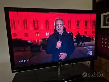 Comodissimo dispositivo 2 in 1 TV LCD IPS e monitor. Dimensione schermo 24" .Risoluzione fullHD. Immagine di ottima qualità grazie al pannello IPS. Usato ma in ottime condizioni. Ovviamente ha gli speaker integrati. due porte HDMI, porta USB (possibilità di collegare una chiavetta con contenuti) porte component e scart. alimentatore. Verrà spedito nella scatola originale. Il telecomando non funziona ma basta un qualsiasi telecomando compatibile da 10 €