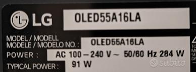 TV oled 55" della LG, modello 55A16LA. Per le caratteristiche tecniche, rimando al sito del produttore. Larghezza: 1230mm Altezza: 750mm Profondità: 50mm (lo schermo misura 4mm) MISURE SENZA PIEDISTALLO. Non funziona l'uscita delle cuffie tramite cavo. Per il resto tenuta maniacalmente. Possiedo anche la scatola originale d'imballo. Qualsiasi prova presso il mio domicilio. Ritiro a Casal Lumbroso