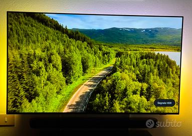 Vendo TV Philips OLED 55” 4K ULTRA HD con Ambilight, acquistato a gennaio 2023, in ottime condizioni estetiche e funzionali. Il pannello OLED offre neri perfetti, contrasto elevatissimo e colori naturali, ideali per cinema, serie TV e sport. La tecnologia Ambilight Philips illumina la parete sul retro seguendo le immagini, rendendo la visione estremamente coinvolgente e riposante per gli occhi. Risoluzione 4K Ultra HD. TV sempre utilizzato con cura, nessun burn-in, mai riparato o manomesso. Software aggiornato.