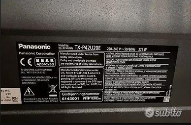 Vendo ottimo Tv al plasma Panasonic TX-P42U20E con risoluzione Full Hd. Il tv si presenta in buonissime condizioni, ad eccezione di qualche inevitabile segnetto lungo le parti in plastica lucida, inevitabili dato il tipo di materiale e il tempo. NON necessita di decoder esterno dato che ne integra già uno. Vi basta collegare il cavo di antenna e alimentazione e riproduce i vari canali, esattamente come mostrato in foto. Colori vividi e neri profondi, una delle migliori serie al Plasma mai prodotte da Panasonic, nulla da invidiare a televisori più costosi. Non è una smart Tv, ma può diventarla semplicemente acquistando con pochi euro una chiavetta tipo amazon fire stick o simile. Verrà fornita completa di cavo di alimentazione e telecomando compatibile.
