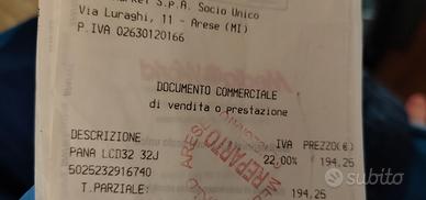 Vendo televisore Panasonic LCD 32", modello TX-32J330E con telecomando e cavo di alimentazione e istruzioni. Due porte HDMI. Schermo LED, risoluzione WXGA, formato schermo 16:9. Pannello: Predisposizione per HD RMR 2K da 400 Hz Contrasto elevato Adaptive Backlight Dimming Suono: Uscita altoparlanti: 12 W (6 W x 2) Modalità audio: Musica /Film / Parlato / Classico / Piatto / Utente. Comprato alla Mediaworld nel 2022 a 194€ (ho ancora lo scontrino), è ancora perfettamente funzionante come si vede da foto. Preferibile consegna a mano in zona.