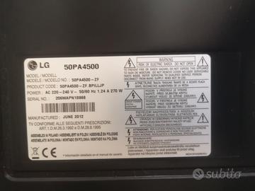 Vendo TV plasma 50 pollici marca Lg modello 50PA4500-ZF. TV funzionante unica pecca una delle due porte HDMI non funziona, per il resto perfetta. Non spedisco, ritiro in zona