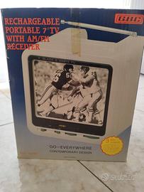 TV portatile Alaron Rhapsody 7” Black & White CRT TV, Model TV-700 3 Way Power Con radio AM/FM. Mai usata e trovata in soffitta.
