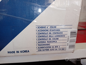Vendo tv portatile 6 pollici a colori. vintage, come nuova usata pochissimo, in macchina e in casa, a tutti i suoi accessori, funziona perfettamente, si può collocare anche ad un video registratore, tv per amatori di oggetti vintage, la cedo per euro 20non trattabili, chi fosse interessato, mi può contattare al n 3491543343,
