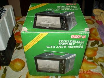 Tv portatile mini marca Geloso vintage degli anni 80, bianco e nero, 7 pollici. Il televisore si può commutare anche in radio AM/FM ed è completo di trasformatore, di altri cavi e di antenna propria. Ancora in confezione originale, in perfette condizioni, come nuovo. Disponibili, per inutilizzo, altri riproduttori audio e video tra cui tv con tubo catodico, smart tv, 1 proiettore All-8 funzionante anni 60 con schermo, alcune macchine fotografiche analogiche, 1 macchina fotografica e 1 videocamera digitali, telefoni analogici anni 60-70-80 e digitali anni 90-2000 e 1 centralino telefonico Allocchio Bacchini anni 30