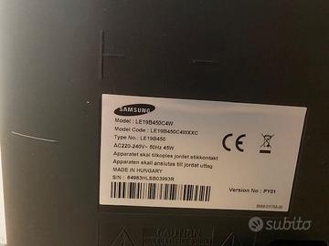 Vendesi televisore Samsung Mod. LE19B450 con telecomando. Valido anche come monitor per pc, con presa scart, e base di appoggio. 19 pollici