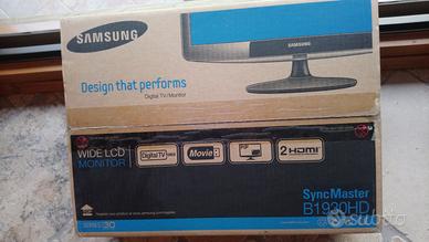 Tv wide lcd monitor samsung, 19 pollici, modello SMB1930HD, risoluzione 1366x768, compatible con window 7. Libretto istruzioni, cavi collegamento, telecomando, scatola originale con imballo. Condizioni ottime, pari al nuovo, ottimo prodotto video e audio ma praticamente mai usato. Vendo per cambio modello