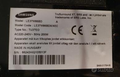 TV Samsung 37" non funzionante, senza piedistallo. Le immagini vengono visualizzate con delle bande orizzontali. Vendo come danneggiato.