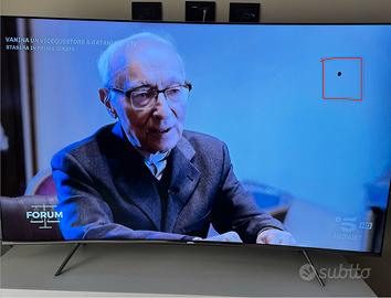 Vendo smart TV Samsung QLed 65’ curvo causa cambio televisore Anno di acquisto 2019 ATTENZIONE: la tv è perfettamente funzionante ma presenta una piccola macchia nera (vedi foto) a causa di alcuni pixel rotti