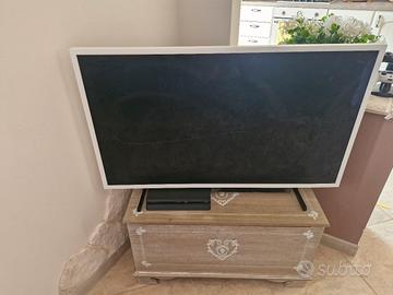 Vendo ESCLUSIVAMENTE causa rottura schermo, TV Samsung The Frame 43 Pollici con Cornice Bianca , Modem Interattivo per attacchi elettrici , Telecomando bianco e tutti i cavi inerenti. Tutto perfettamente funzionante, vendo esclusivamente perché mia figlia ha rotto lo schermo.