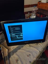 Come da foto . Si può anche appendere . Valido sia come piccolo TV che come schermo PC . Ha tutti gli ingressi anche HDMI.