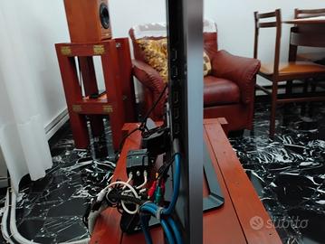 I pollici del tv sono 47 ed è 3d smart. Due telecomandi uno a infrarossi tipo mouse ed uno standard . Presenta un supporto da tavolo su cui appoggia, girevole di 30 gradi circa, sia a dx che a sx.