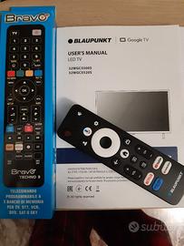 Marca Blaupunkt, taglia 32", modello 32WGC5500S, colore nero, doppio telecomando, istruzioni e imballo originale per un trasporto sicuro.