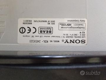 Vendo televisore SONY da 24 pollici con annesso supporto per montaggio a parete. Perfettamente funzionante, vendo senza telecomando.