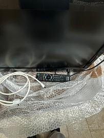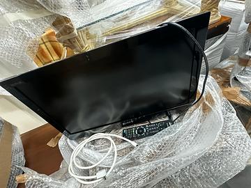televisore LCD della linea Sony Bravia, accompagnato dal suo telecomando originale e da un cavo antenna bianco.