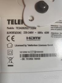 TV Telefunken 24 pollici con staffa per agganciare al muro e basamento. Senza scatola originale e istruzioni.