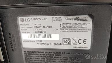 TV modello LG24TL520V , 3,3 KG , LG Monitor LED 24" 16:9 HD Ready Risoluzione 1366x768 ,ha anche ingresso antenna Satellite oltre Digitale Terrestre , anche Montaggio a parete VESA (mm) 75 x 75