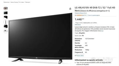 PREZZO TRATTABILE Vendo per questioni di spazio (il televisore è molto ampio) TV FULL HD - Sintonizzatore Digitale Terrestre Marca LG 49LH510V in buone condizioni.