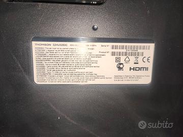 Vendo televisore Thomson da 32 pollici (modello 32HU3253C) perfettamente funzionante. Nota importante: Accessori: Viene venduto senza telecomando e senza piedistallo (ideale da appendere al muro con staffa VESA standard). Ricezione TV: Il sintonizzatore interno non è compatibile con il nuovo segnale digitale terrestre. Per vedere i canali TV classici serve un decoder esterno. Per cosa è perfetta: Grazie alle porte HDMI, è ottima per essere usata con: Amazon Fire Stick / Google Chromecast (per renderla Smart). Console da gioco (PlayStation, Xbox, Switch). Come monitor per il computer.