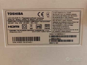 Vendo tv Toschiba bianco con schermo non funzionante. I canali si sentono e il telecomando funziona.