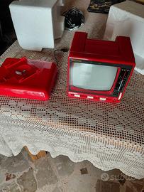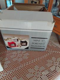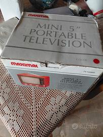 Un pezzo di storia della tecnologia. Mini 5" PORTABLE TELEVISION "MAXIMAL" modello TV50080 completo di supporto di alimentazione a batterie, cone nuovo usato solo un paio di volte, completo di scatolo.